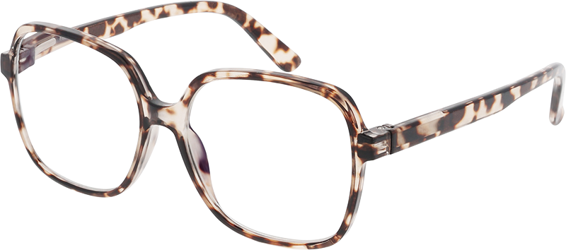 Apresenta uma elegante armação em policarbonato tartaruga cristal